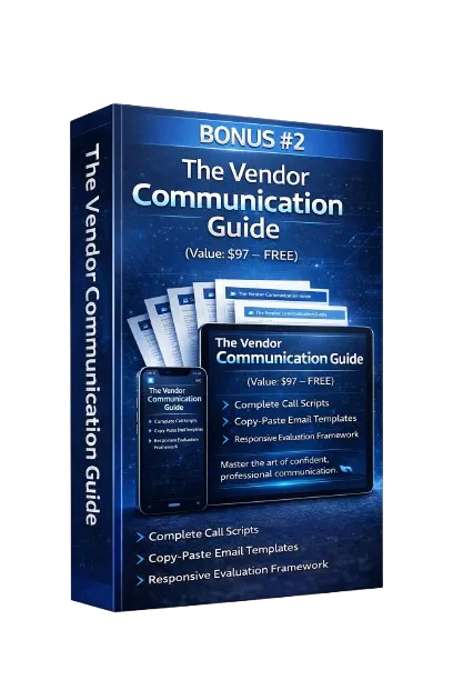Complete call scripts, five copy-paste email templates, response evaluation framework, and the mindset guide that gives you the confidence to ask any vendor any question — professionally, clearly, and without confrontation.