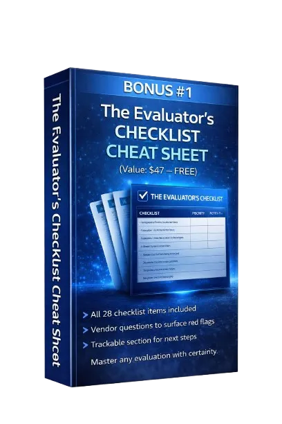 Interactive digital tool. All 29 checklist items scored in real time with risk-weighted analysis, course-grounded explanations for every flag, and vendor questions surfaced for every unresolved item. Your complete evaluation in one place.